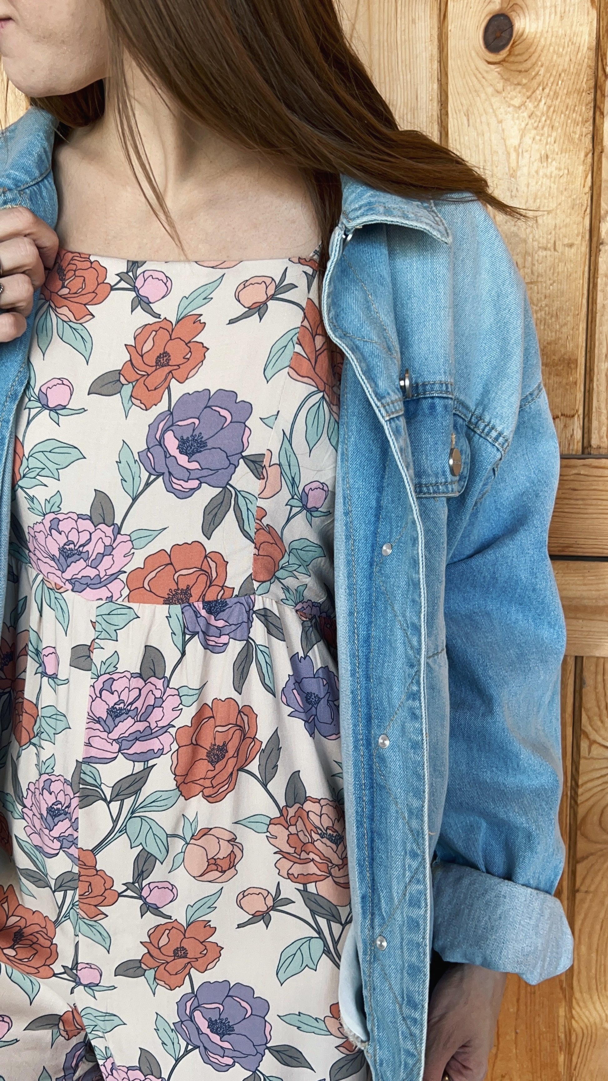 Cream floral romper with dreamy pops of purple, orange, pink, and peach. Lightweight, comfy, and flattering—this women’s floral romper is perfect for spring days, summer outings, brunch dates, and vacations. Easy one-and-done style you’ll reach for all season long.